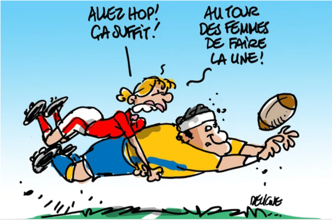 L’ovalie n’est pas en reste: dans le magazine de rugby (avril-mai-juin 2023) qui comporte 68 pages, deux seulement montrent des femmes… dont une qui nous informe que la fille d’un homme politique est en couple avec un rugbyman.
